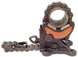 PETOL Tongvises have the unique feature of being easily adjusted to various pipe sizes by simply sliding the heat-treated PETOL Special chain through the jaw of the vise and engaging the pawl. The pawl is locked in position by the pawl latch. Regardless of the load being applied these vises will not jam.
